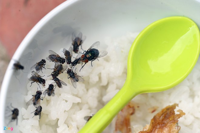 | Ruồi có thể vận chuyển mầm bệnh cho con người qua đường tiêu hóa. Ảnh: Hoàng Hà. |